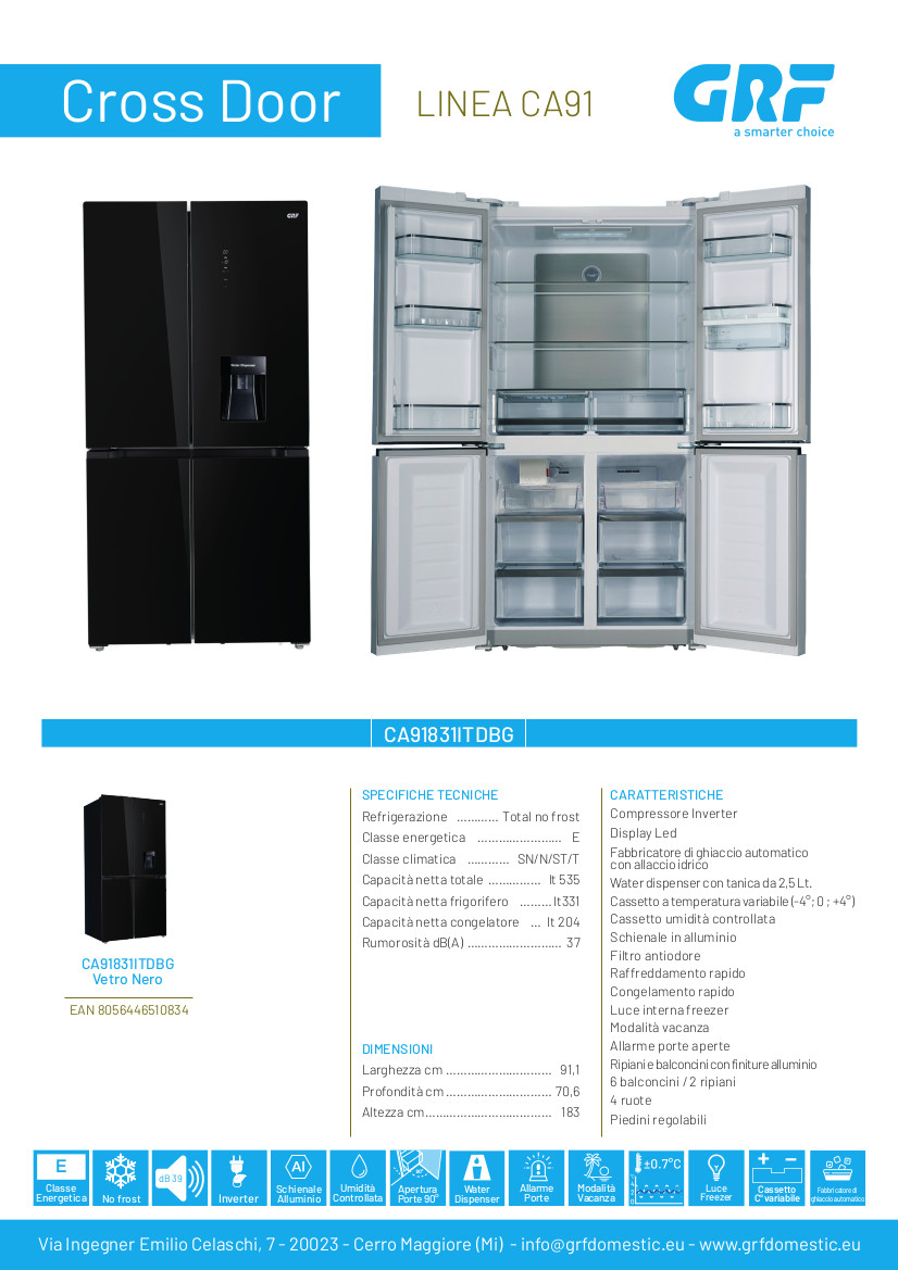 Un prodotto con ampi balconcini, ripiani e cassetti con finiture in alluminio nella parte frigorifero. Due vassoi e quattro cassetti nella parte freezer assicurano massima capienza per tutti i cibi. In più, è presente un pratico water dispencer.