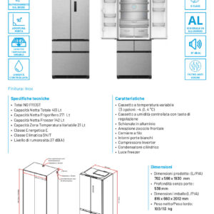 RTM7659WJIX2 – 76,2 x 59,8 x 193 cm – Classe Energetica E – Capacità Netta Totale 413 Lt