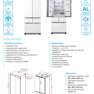 RTM7659WJBG2 – 76,2 x 59,8 x 193 cm – Classe Energetica E – Capacità Netta Totale 413 Lt