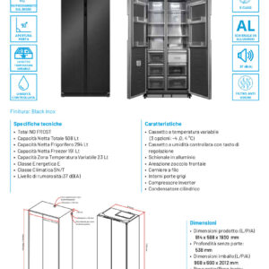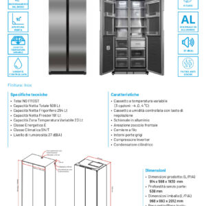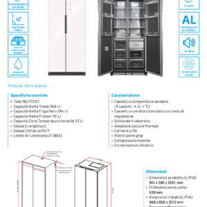 T91831WIN2BG – 91,1 cm x 70,6 cm x 183 cm – Classe energetica: E – Capacità netta totale: lt 529